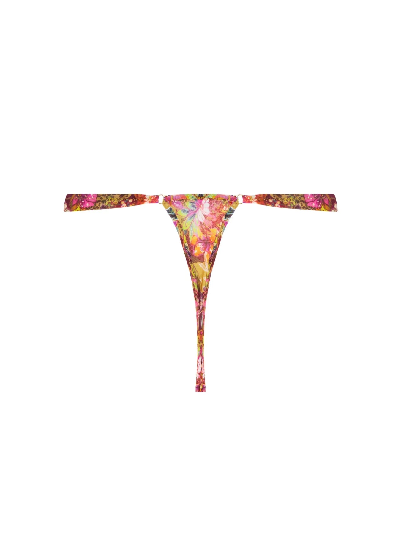 This thong is crafted from ultra-soft printed tulle, featuring an embroidered inset at the center front set into sheer tulle. Two gold-tone jewels are attached to each side for an elegant decorative touch.