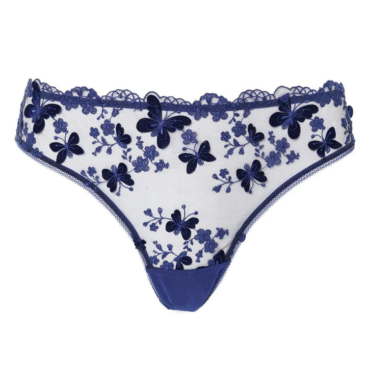 The luxurious Papillon Tanga showcases the perfect fusion of delicate fine tulle and intricate floral embroidery, with meticulous attention to detail. Adorned with velvet butterflies, gracefully resting on enchanting flowers adding a touch of ethereal beauty. Experience all-day comfort thanks to soft, breathable materials and a seamless fit. This tanga is thoughtfully crafted for a smooth, no-show silhouette, making it the perfect choice to wear under any outfit.