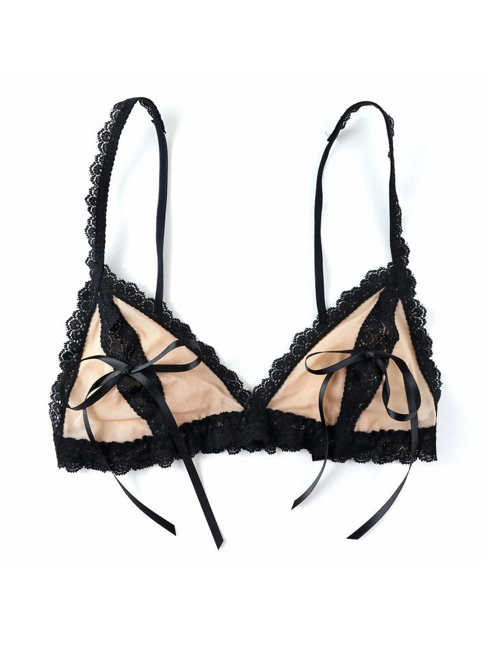 • Body: 89% Nylon, 11% Spandex; Trim Lace: 90% Nylon, 10% Spandex; Ribbon Tie: 100% Polyester