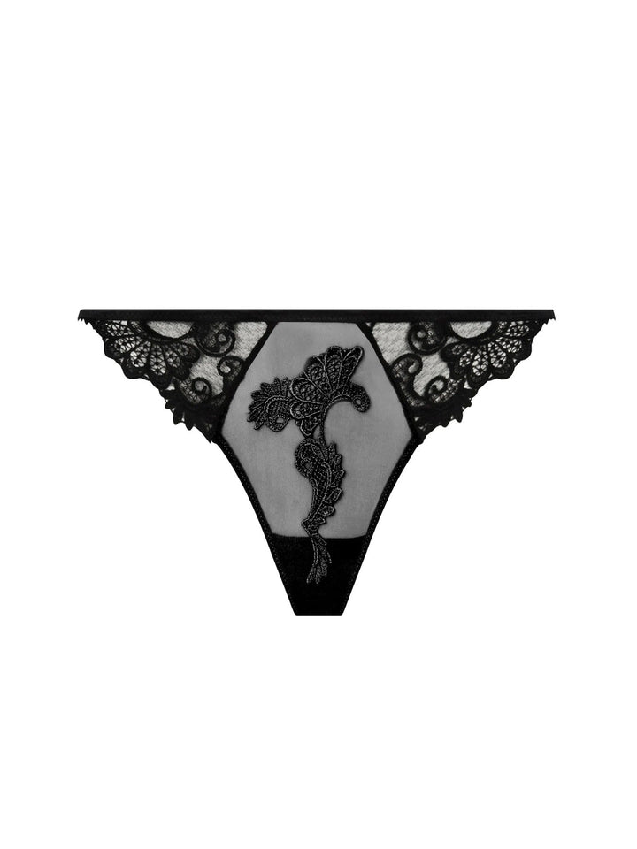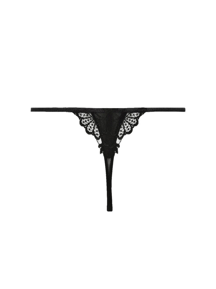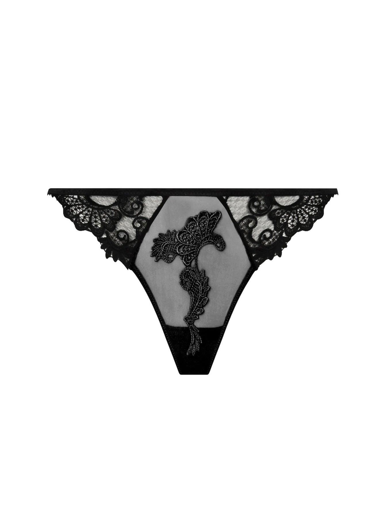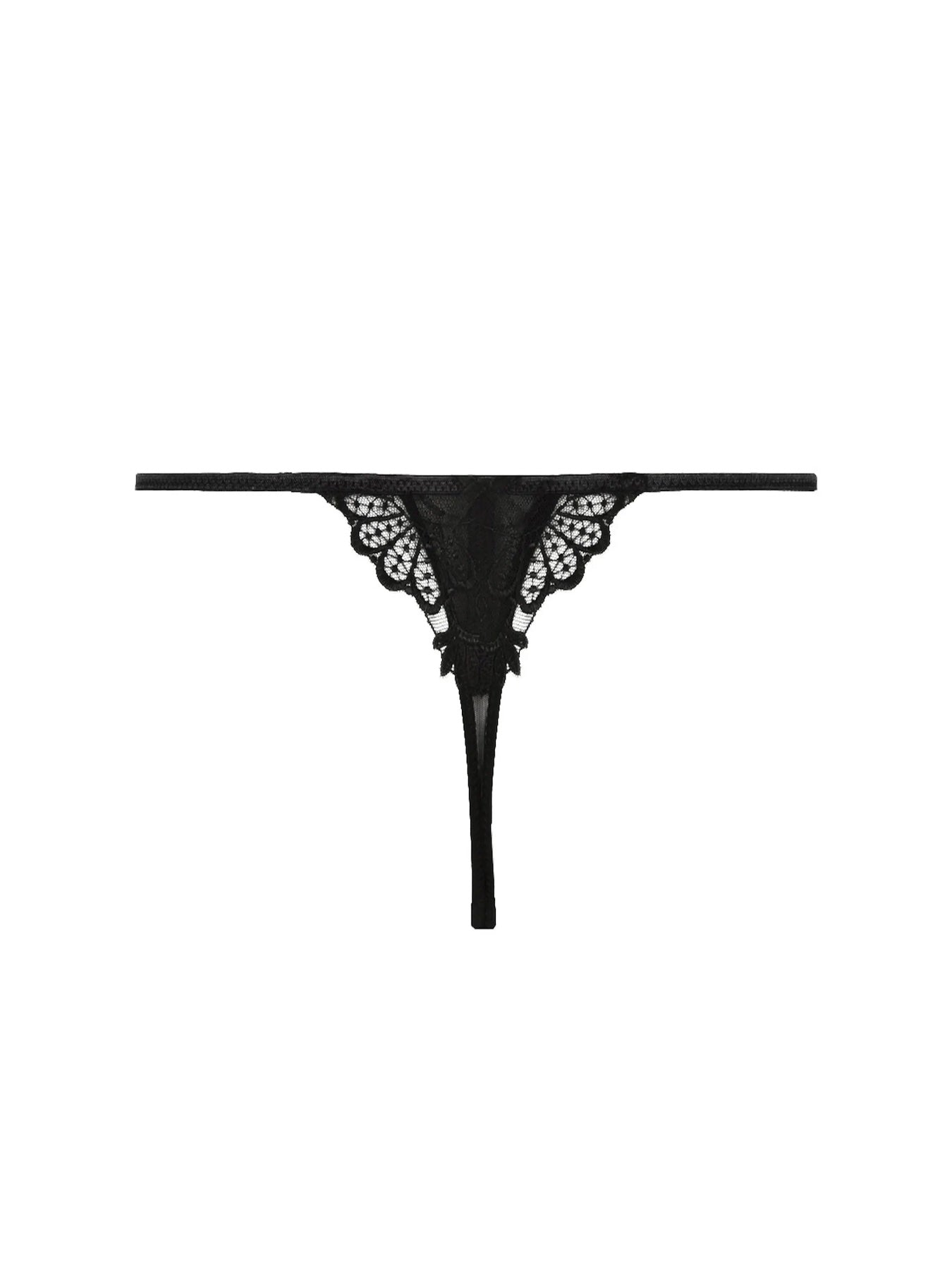 - Stunning Low waist sexy thong in tulle revealing subtlety the bottom. Guipure yokes with tatoo effect.