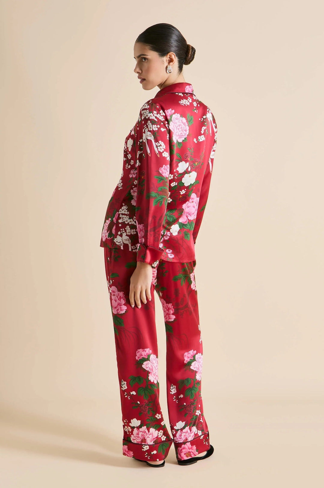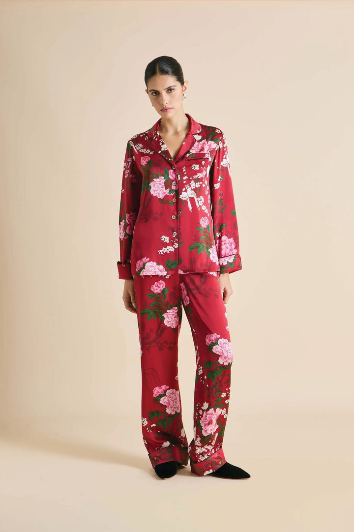 Olivia von Halle Lila Tardieu Red Floral Silk Pajama Set - Sugar Cookies Lingerie