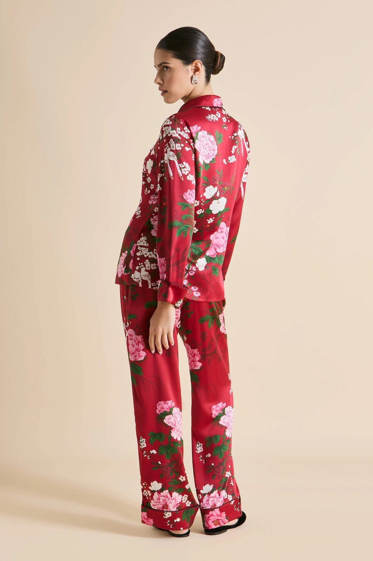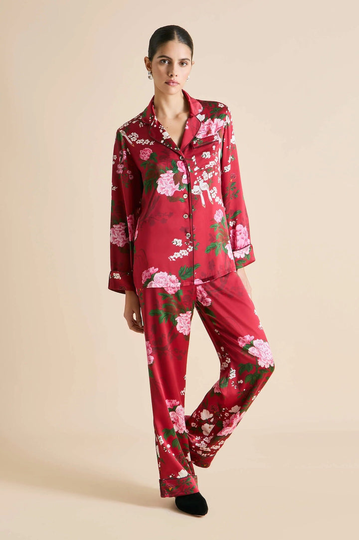 Olivia von Halle Lila Tardieu Red Floral Silk Pajama Set