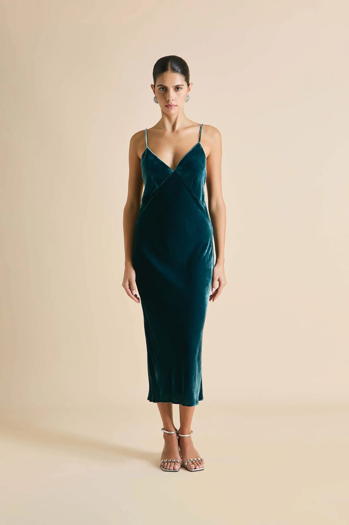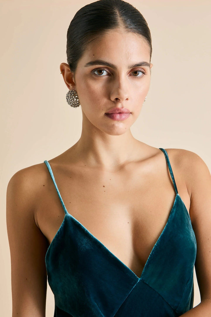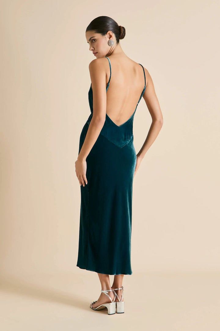 Olivia von Halle Issa Ocean Blue Velvet Slip Dress - Sugar Cookies Lingerie